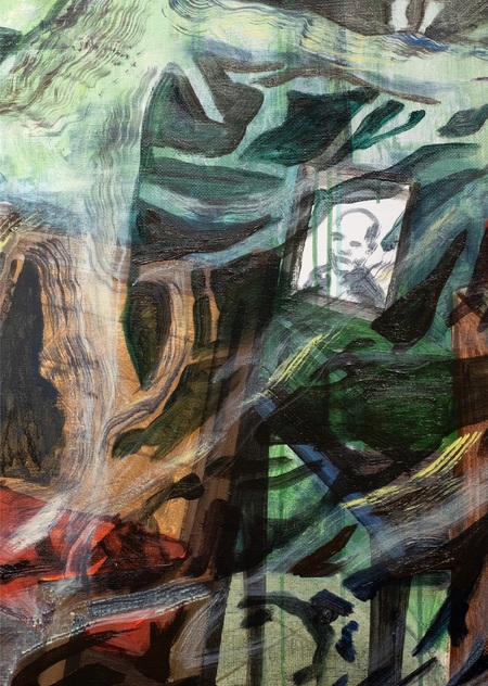 Проект начался с этих холстов. Моя главная тема — пространство. Я воспринимаю его как личное убежище и хранилище коллективной памяти. Пространства на моих картинах частично вымышлены, частично реальны. Кроме того, меня интересует взаимодействие человека и природы. В моих работах это выражается через создание искусственных сред, которые люди создают для себя, когда лишены доступа к настоящей природе.