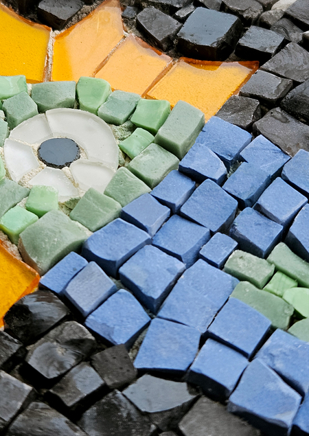 В качестве последней мозаики, когда на улице уже начало становится тепло, мне захотелось создать что-то, что напоминало бы мне о море и солнце. На ум приходил сладкий вкус ярких апельсинов.