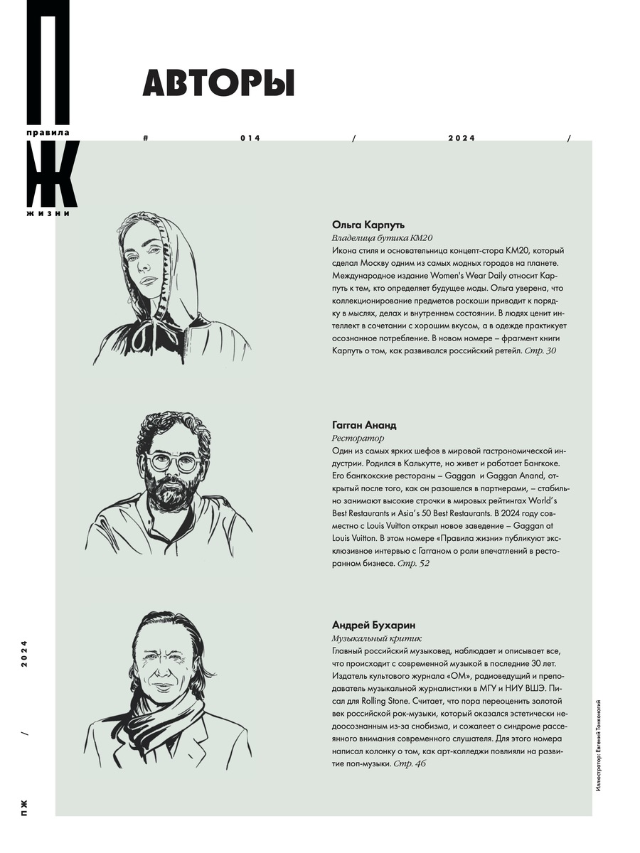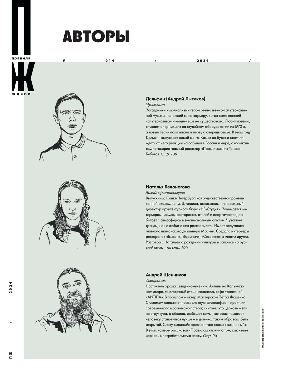 Ольга Карпуть, Гагган Ананд, Андрей Бухарин, Дельфин (Андрей Лысиков), Наталья Белоногова, Андрей Щенников для журнала Правила Жизни