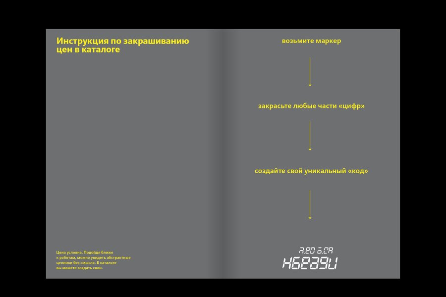 В начале книги нет обложки. Перед нами лишь каталог товаров. Твёрдая обложка появляется только в финале, фиксируя момент осознания и завершения пути — так же, как на выставке магазин постепенно раскрывается как художественное пространство.
