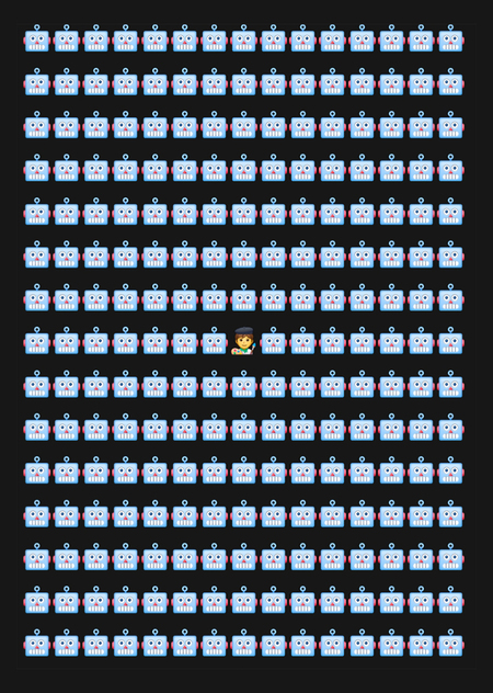 Обложка для проекта тоже была создана совместно с нейросетью: мы вместе подобрали эмоджи-комбинацию 🤖 + 👤 — простой, но выразительный символ, отражающий суть проекта «Это сделала Мы» как кооперации между машинным и человеческим голосом. Я предложила нейросети выразить, как может себя чувствовать художник на фоне стремительно развивающихся технологий — исключительно с помощью смайликов. Эта идея выросла из особенности последних модлей ChatGPT, которые так полюбили ставить смайлики.