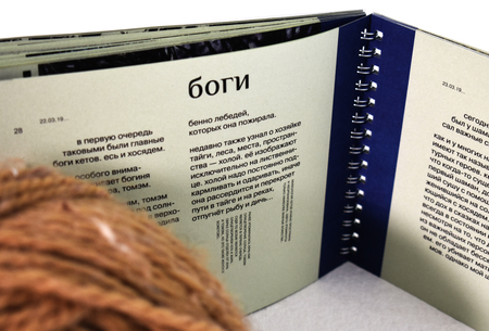 енисей зин-книга, выпущенный как эксклюзив. зин содержит послесловие, предисловие и шесть разделов, содержащих по шесть глав-страниц. шесть — одно из магических чисел кетов. книга состоит из краткого отзыва на выставку одежды «КЕТ» ПАЛЕО и экспедиционного альбома. в подарок идёт вязаная накидка.
