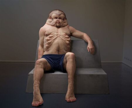 «Грэм». Изначально этот человек создавался как человек, способный выжить в автокатастрофе. Эта интерактивная, гиперреалистичная скульптура наглядно показывает нашу уязвимость перед проишествиями и направлена на то, чтобы снизить смертность на дорогах, по сути являясь, образом постчеловека: отсутствие шеи и ушей, большее наличие костей в районе головы, которые смогут защитите от удара, но также стоит отметить, что работа художницы граничит с боди-хоррором, также некий дискомфорт от непривычной картины.