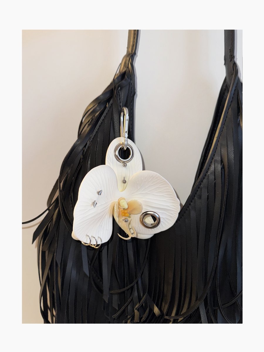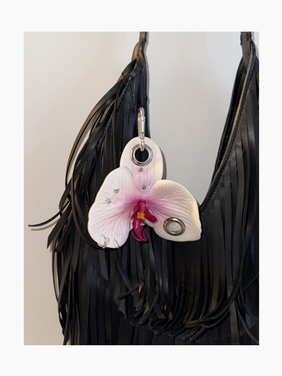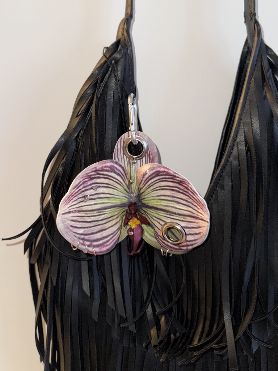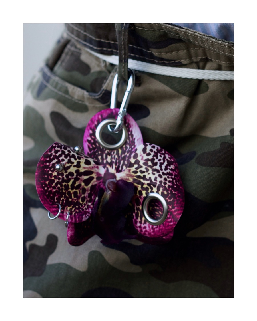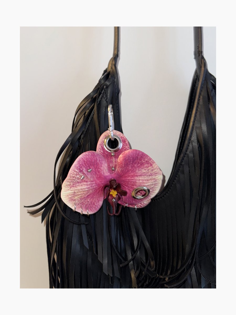 Каждый брелок «amulet orchid» — это самобытный аксессуар, в котором природная элегантность цветов переплетается с дерзкими металическими вставками, создавая неповторимый стиль для тех, кто ценит индивидуальность и смелость.