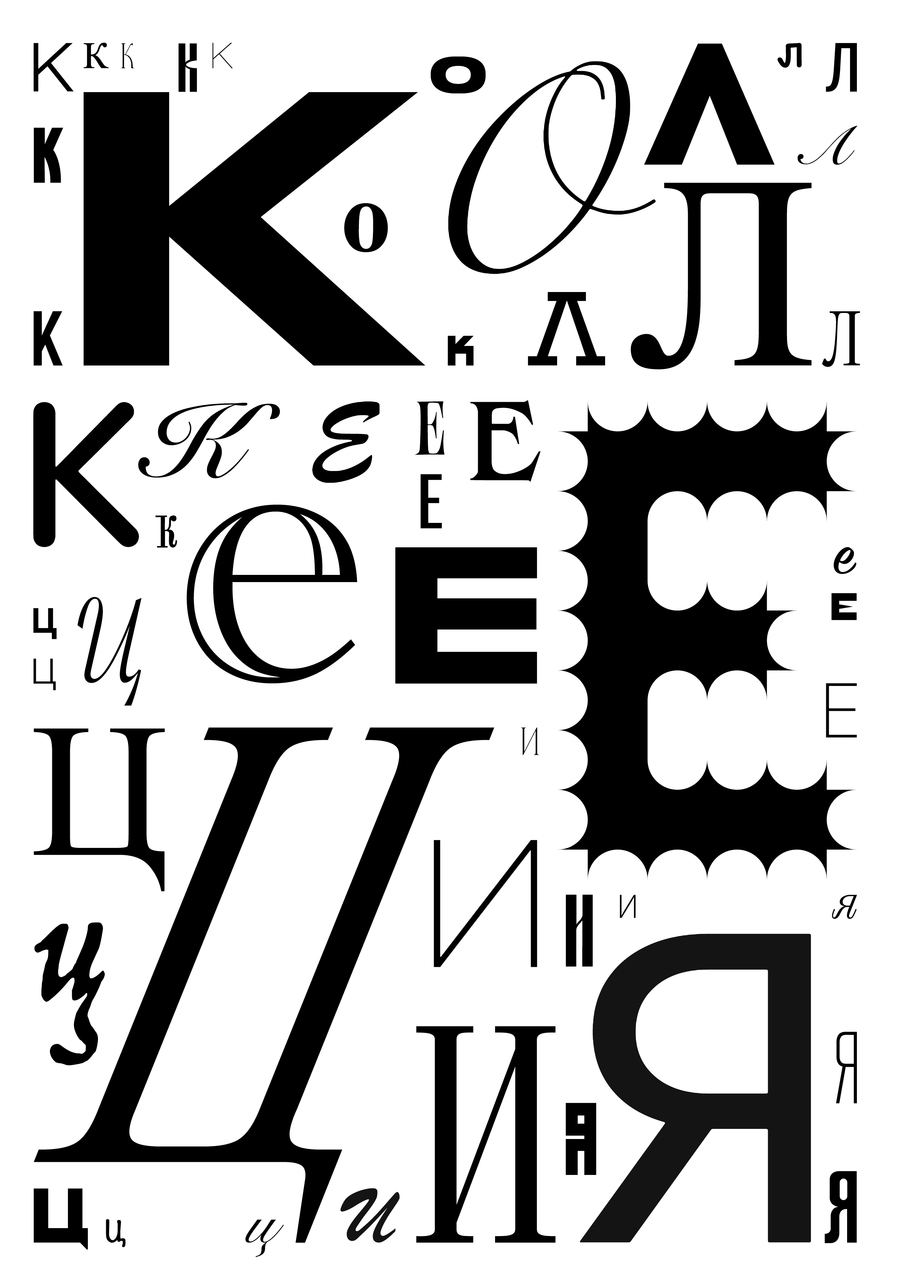 Коллекции могут быть разными, ведь собирать можно все. Говоря о выставке, связанной с этим увлечением, нельзя не задуматься о ключевом образе. Выбрав слово, объединяющее экспонаты, создается прямая связь между плакатом и выставкой. Зрителю легко представить любую коллекцию на месте букв, включая свою.