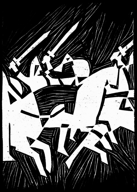 «Рыцари» Печатная графика. Линогравюра. Размер листа 210×148 мм.
