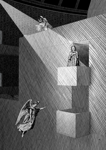 Основной идеей было обновить понимание эзотерики современным человеком, погрузить с помощью объемных форм и различных пространственных элементов в переосмысленный мир типичного героя выставляемых картин. Весь музей построен по хронологическому принципу: зритель идет строго по таймлайну, начиная с наиболее базовых работ, к современным неоновым медиа инсталляциям, обзор на которые открывается с верхних галерей. Маршрутов и ракурсов, с которых можно взглянуть на главное здание, много. Музей Эзотерики в каком-то смысле напоминает лабиринт — данный эффект создается за счет многочисленных лестниц, системы мостиков и галерей.