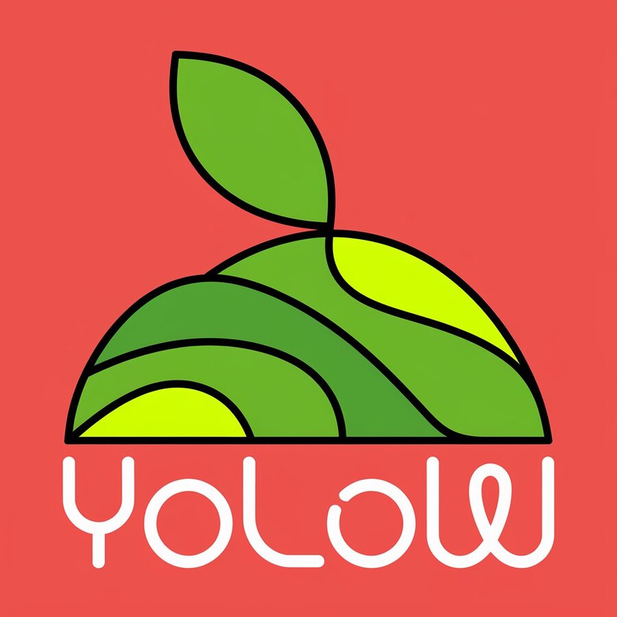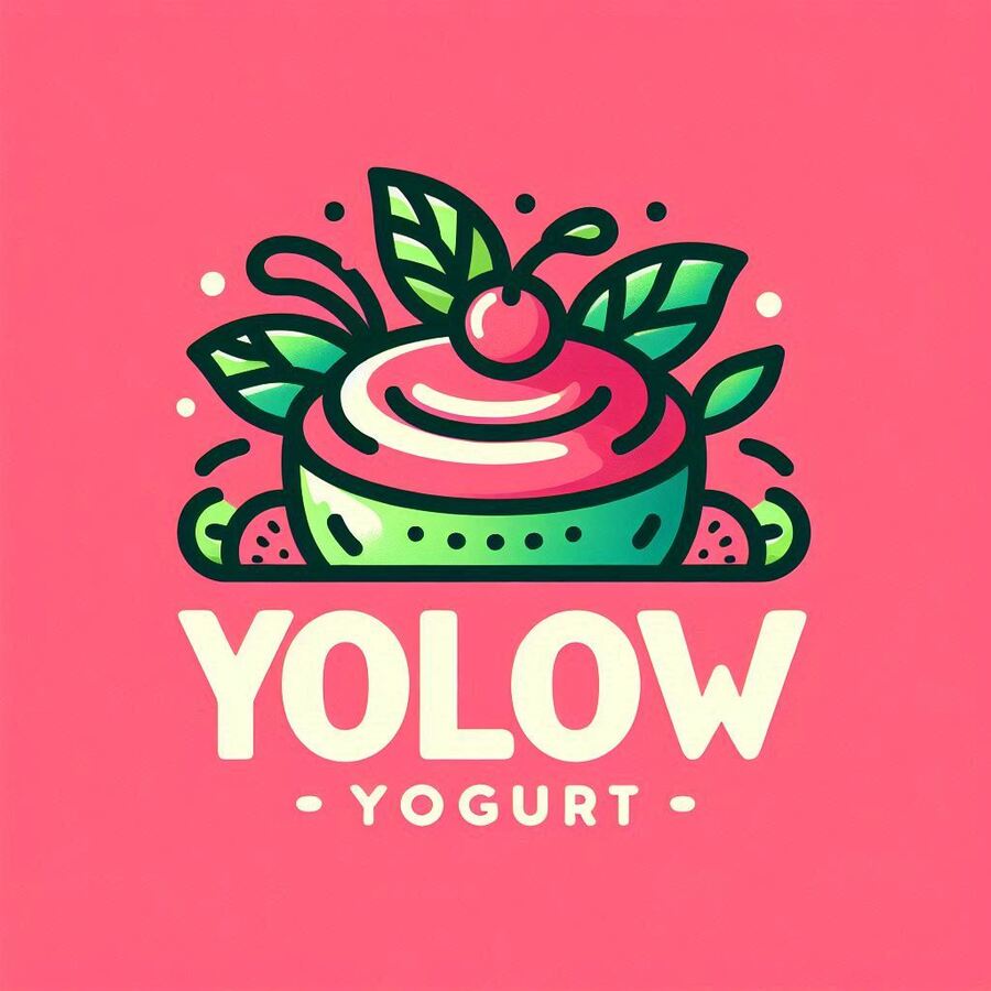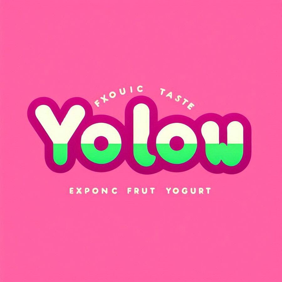 /promt: create minimalistic vector logo for company named «YOLOW» that sells yogurt with exotic fruit taste, main colors are vibrant magenta pink and lime green
