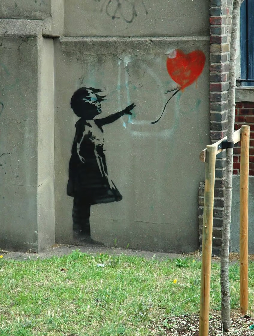 Take for example his piece «Girl with a Balloon», seemingly innocent, a child reaching for a heart-shaped balloon and yet, it resonates universally as a symbol of lost innocence, fleeting hope, and human fragility. When it self-destructed moments after being auctioned at Sotheby’s, it wasn’t just a prank. It was a powerful commentary on the commodification of art, a statement that art made to challenge systems should not be absorbed and neutralized by those very systems.