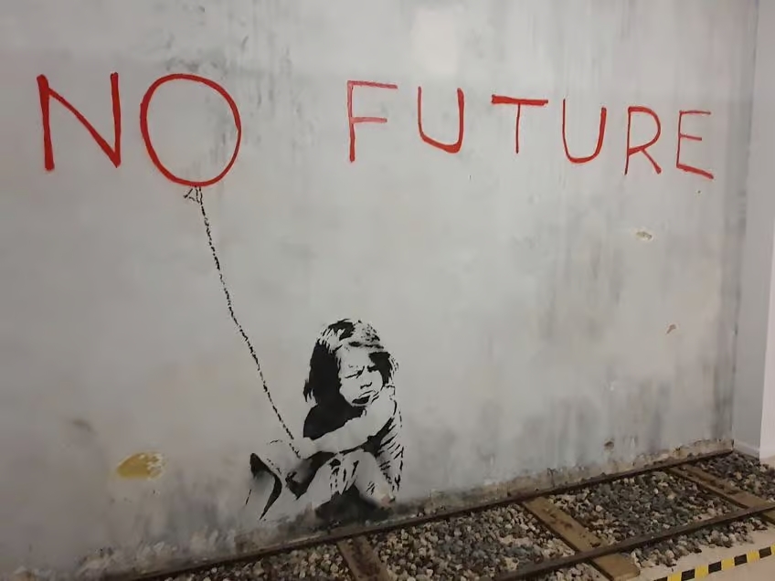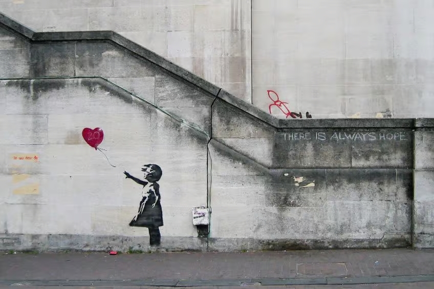 Girl with heart balloon (2006); Flying Ballon Girl on the West Bank wall at Kalandia (2005); No Future in Southampton (2010) There is Always Hope, version in South Bank (2002) Artist: Banksy