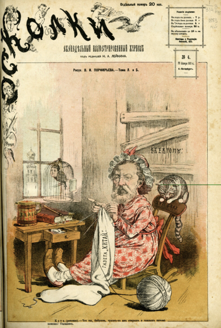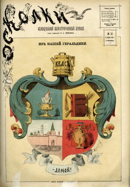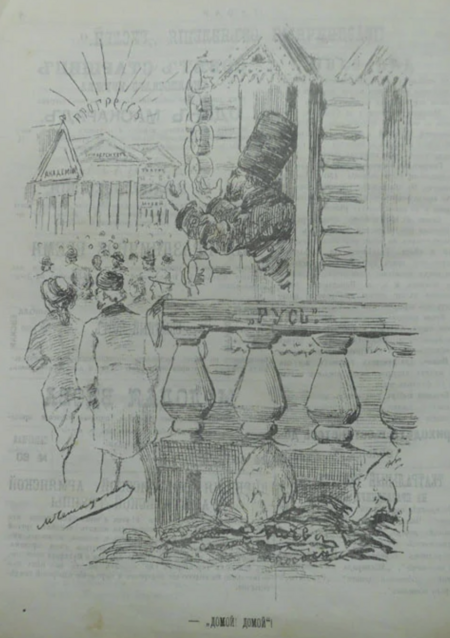 (1) Порфирьев В. И. Что ты, бабушка // Осколки. 1883. 22 янв. № 4. С. 1 (2) Чемоданов М. М. Домой! Домой! // Гусли. 1881. 27 дек. С. 8