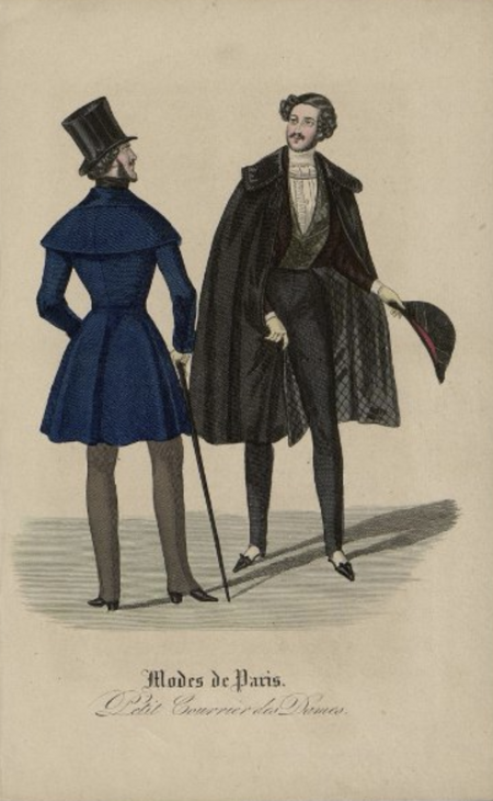 (1) Шинель «макинтош» // 1850-е (2) Мужская шляпа (цилиндр) «Chapeau-claque» // 1860-е