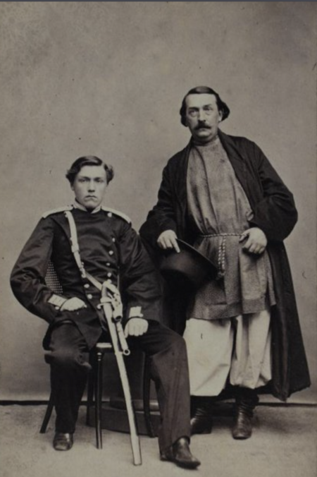 (1) Аксаков Сергей Тимофеевич // Ф. А. Брокгауз, 1860-1870-е (2) Портрет (фото) славянофила Юрьева с сыном // Т. Ф. Боретти, 1860-е