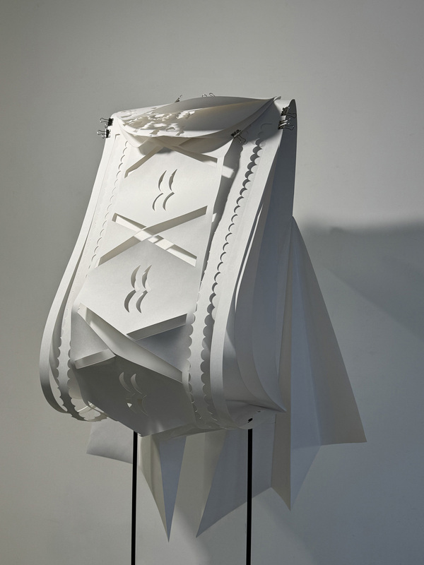 Авторы вдохновлялись праздничными элементами этнических костюмов (воротником и нагрудником) для создания объемно пространственного арт-объекта из бумаги.