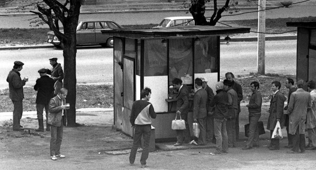 Пара из 90-х. Фотограф Сергей Подгорков // Очередь за пивом, Ленинград. Фотограф Сергей Подгорков