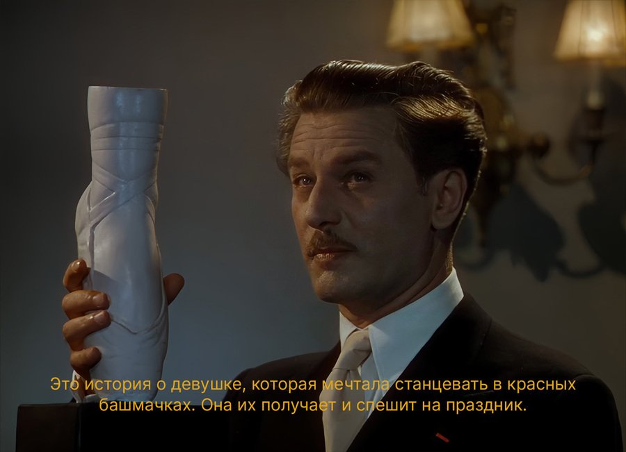 Лермонтов рассказывает сюжет сказки, поручает Крастеру написать партитуру для нового балета «Красные башмачки» и выбирает на главную роль Вики. Сразу заявляется, что героиню сказки в конце ждет смерть.