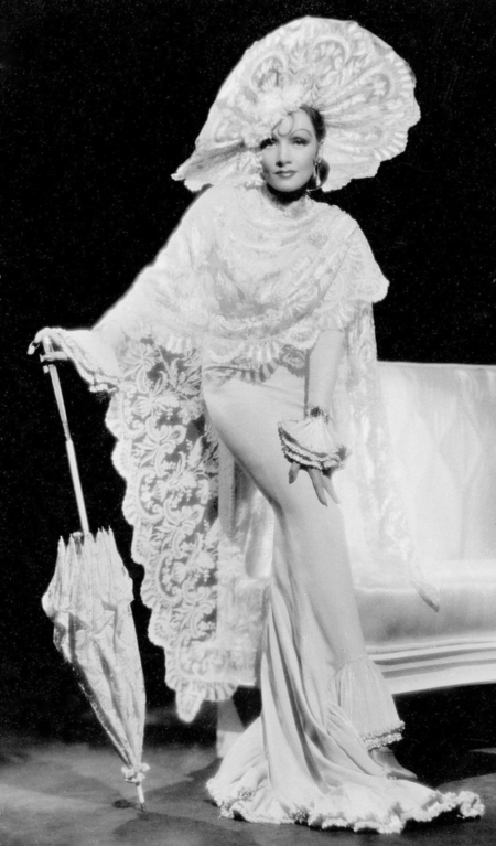 Фильм «Дьявол — это женщина» (1935) идеально отражает визуальный контраст между костюмом и личностью. В нём белый цвет в образе Кончиты Перес, роковой женщины фильма, функционирует как инструмент мистификации, создавая парадокс между визуальной невинностью и разрушительной сущностью героини. Её образы из кружев, вуалей и перьев строят почти фантазийный силуэт — она предстаёт как нечто эфемерное, воздушное, едва осязаемое. Однако за этой светлой оболочкой скрывается фигура, обладающая абсолютной властью над мужскими персонажами. Белое платье становится не символом чистоты, а маской, инструментом управления восприятием.