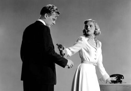 В фильме «Двойная страховка» (1944) героиня Филлис Дитрихсон появляется в кадре в ярко-белом костюме, контрастирующем с тёмным интерьером. Этот образ буквально «высвечивается» на фоне мрачной обстановки, подчёркивая исключительность персонажа. Свет, играющий на белой ткани, усиливает ощущение искусственности, «неконтактности» этой женщины, что визуально подготавливает зрителя к её двойственной натуре. Белый здесь не обозначает чистоту — он становится оболочкой, скрывающей холодный расчёт.