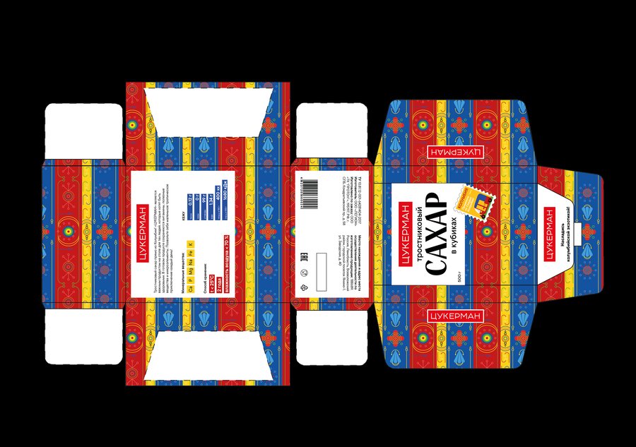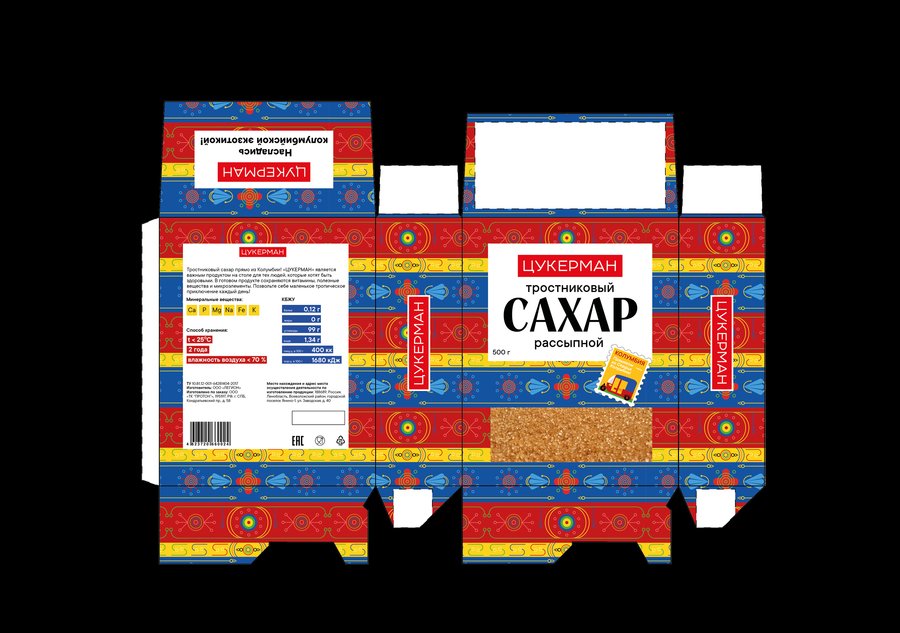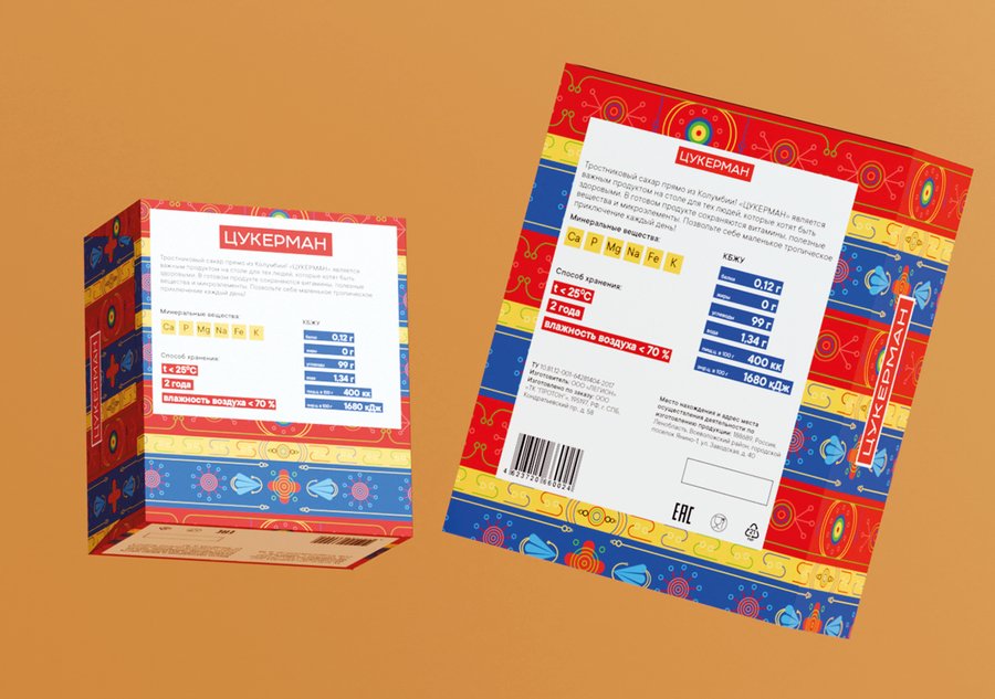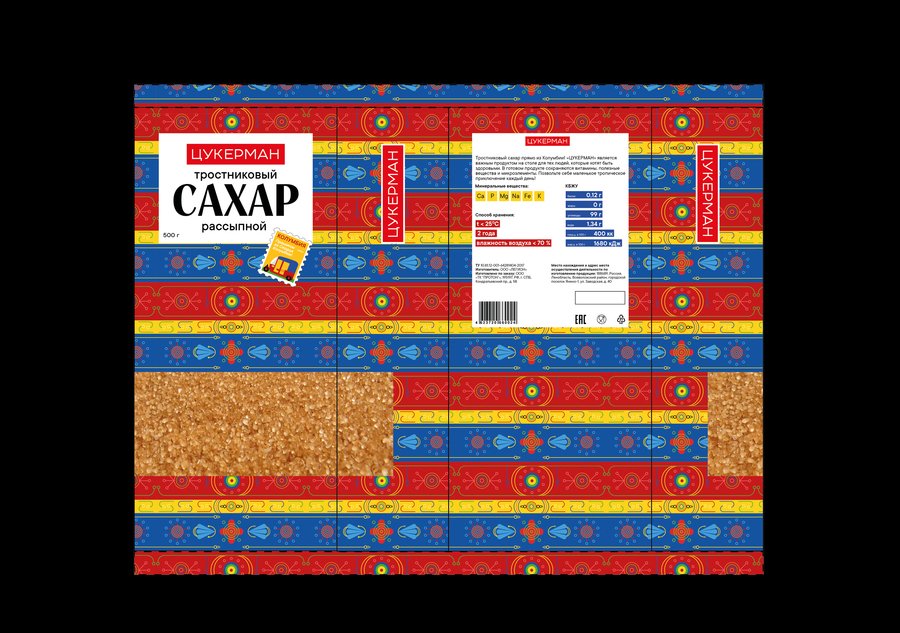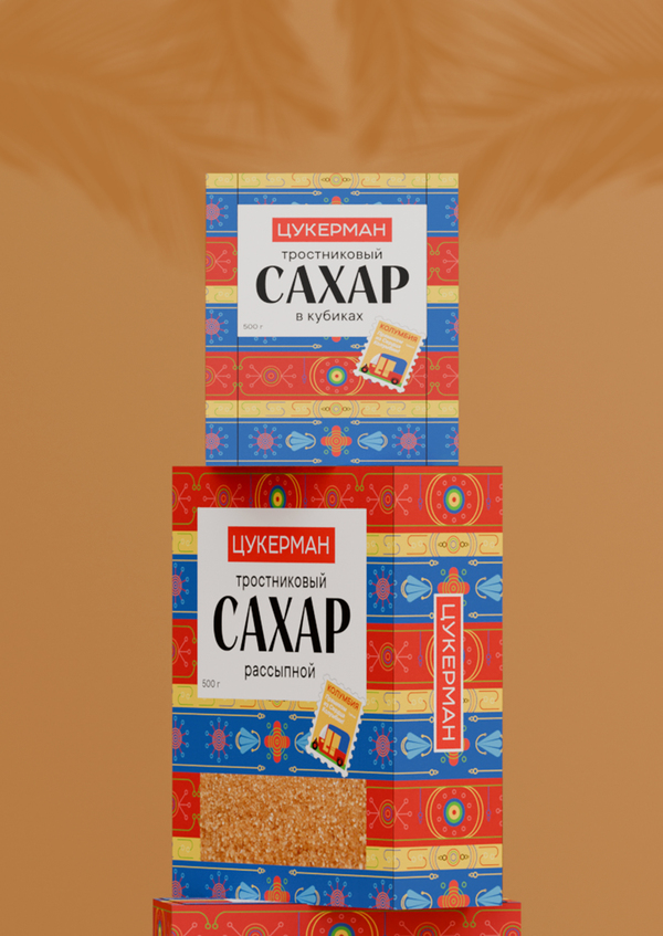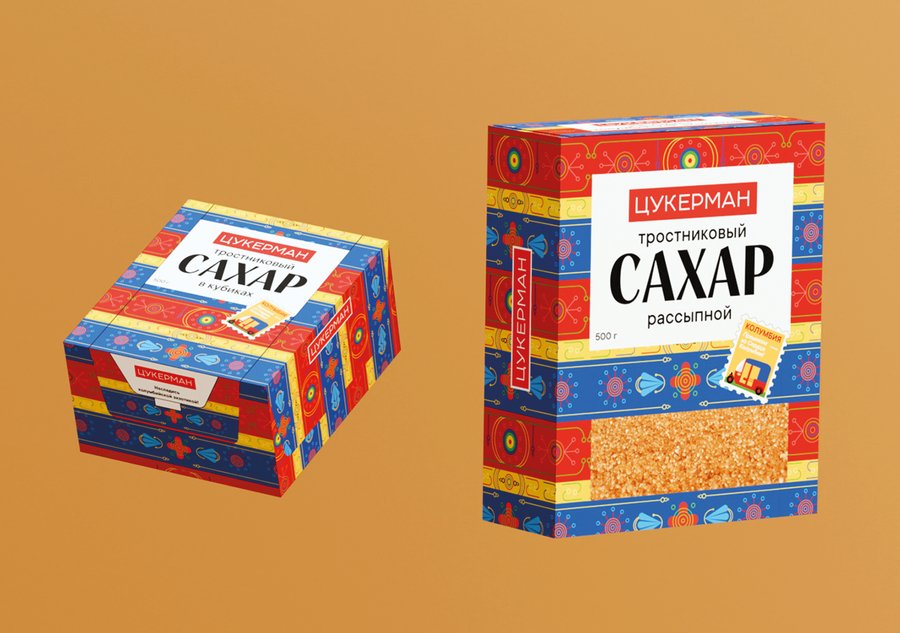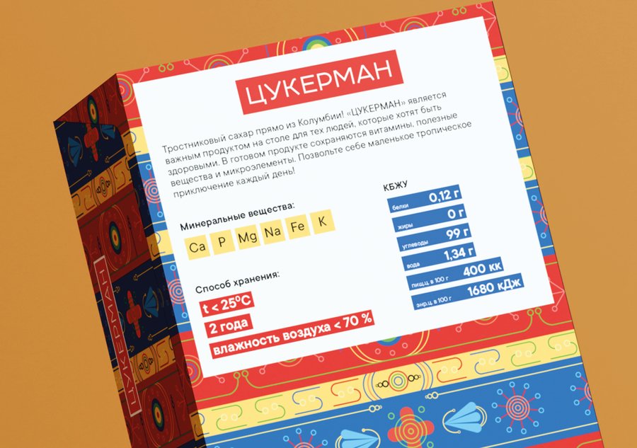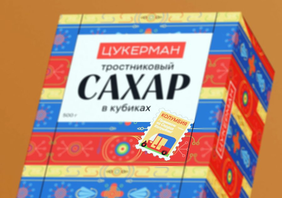 ЦУКЕРМАН — тростниковый сахар из солнечной и жаркой Колумбии с неповторимым вкусом и ароматом. Он имеет более богатый минеральный состав и более высокое содержание витаминов (калий, железо, натрий, кальций, фосфор). В своей упаковке хотела отразить городскую жизнь в Колумбии