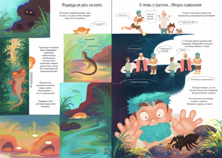 Нон-фикшн комикс о содержании террариумных животных для начинающих.