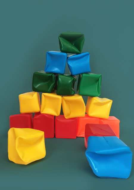 Представленная зрителю инсталляция — свидетельство того, как героя учили пользоваться реальными предметами, как робот учился быть похожим на человека.