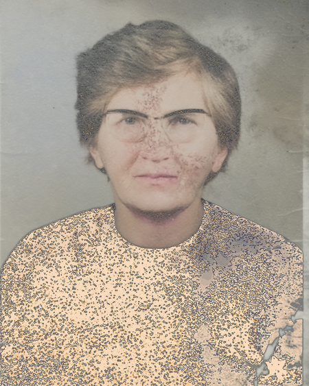 Работая с пространством времени Евгения, рассматривает область пересечения концептуальной фотографии с сохранением памяти. Проект берет за основу строго регламентированное государством изображение человека — фотографию на документы — и наделяет его эмоциональным слоем, чтобы почтить память тех, кого уже нет. Работая с рассказами и историями, которыми делились семьи героев, Евгения создаёт визуальные образы, стремясь отразить личность каждого человека через цвет и обработку сдержанного архивного изображения.