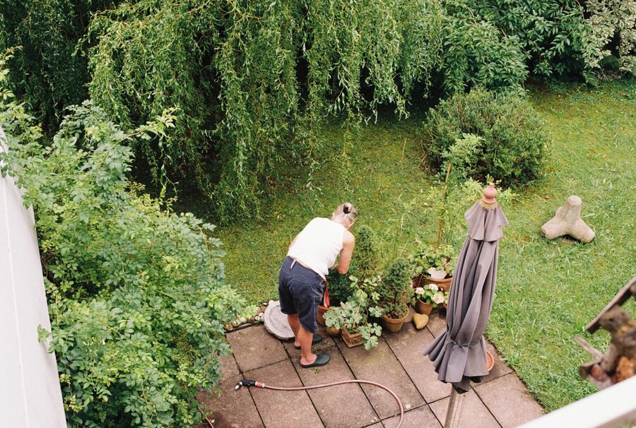 Фотограф. Работает с темами повседневности, семьи и дома. «В серии „Глядя вниз“ я фиксирую занятия своих соседей на маленьком кусочке земли в течение весны и лета, чтобы заметить, как меняются сезоны, как я адаптируюсь к своему новому дому, заземлиться и почувствовать пространство вокруг себя с помощью одного кадра».