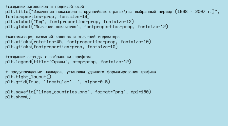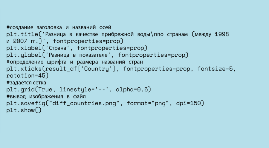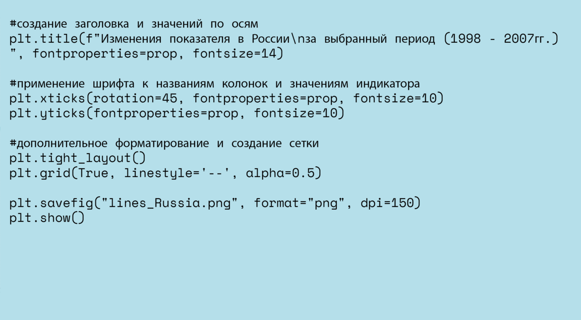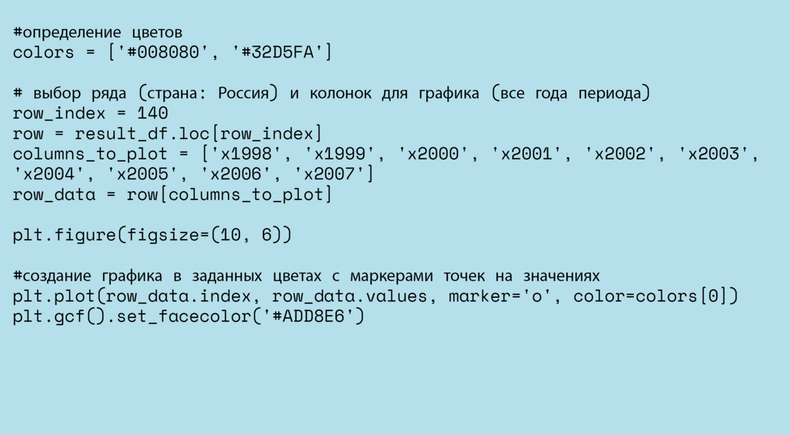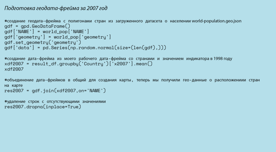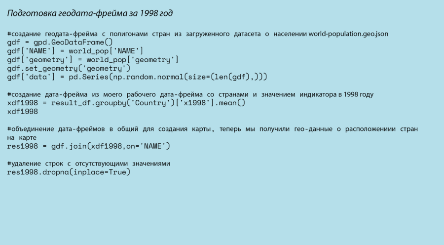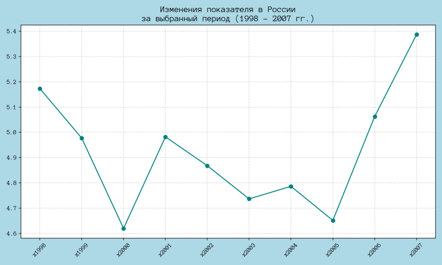 Помимо этого, последней колонкой был добавлен столбец с разницей между первым и последнем показателем (за 1998 и 2007 г.). Так, количество колонок в итогом дата-фрейме — 14.