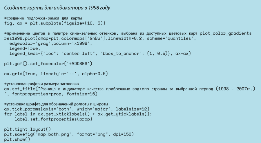 Географическая диаграмма. Наглядное сравнение показателей по странам в 1998 и 2007 годах. Пояснение с кодом
