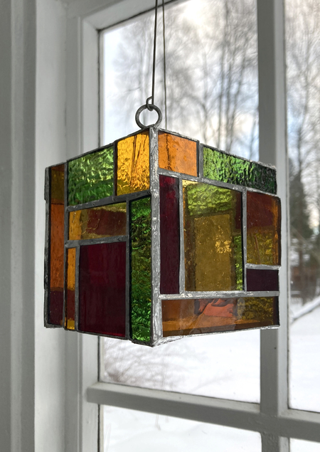 2. Витражная гирлянда, составленная из прямоугольных слекол, оставшихся от предыдущих работ.