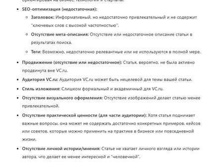 Могу предположить, что данная статья оказалась подходящей под запросы пользователей VC.ru и могла бы набрать более высокие охваты, правда стоит ее дорабатывать, добавить изюминки и уникальности.