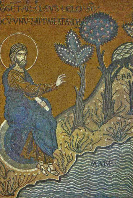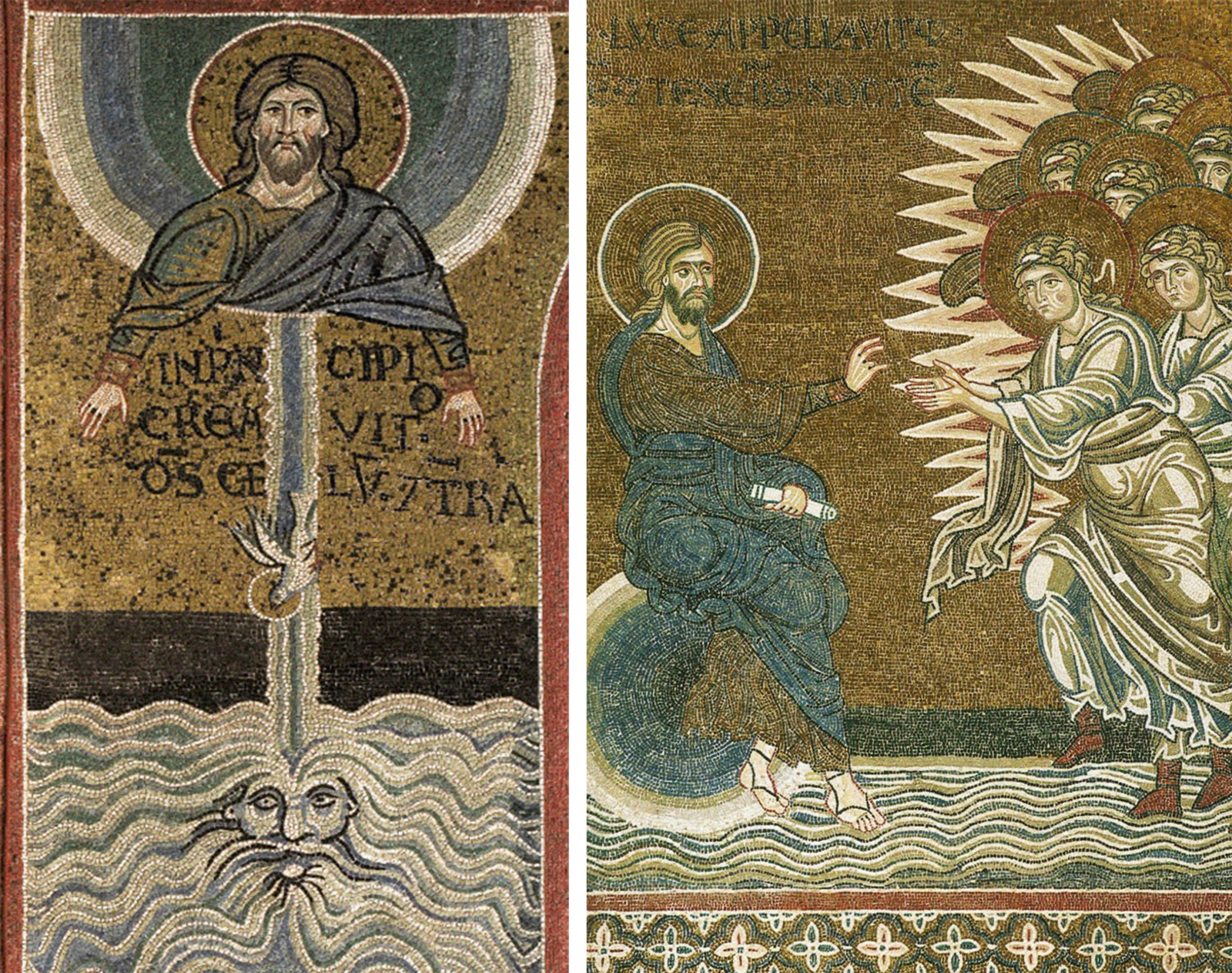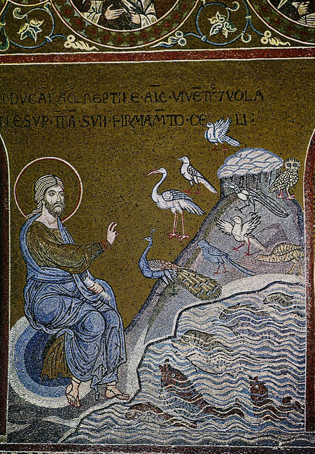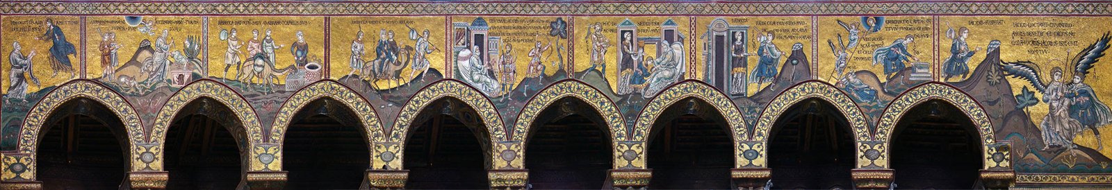 В мозаичных циклах присутствуют обширные повествовательные сцены из Ветхого Завета, такие как история сотворения мира, жизнь Ноя или сотворение Адама и Евы. Эти развернутые циклы были более характерны для западной традиции и служили «Библией для неграмотных».