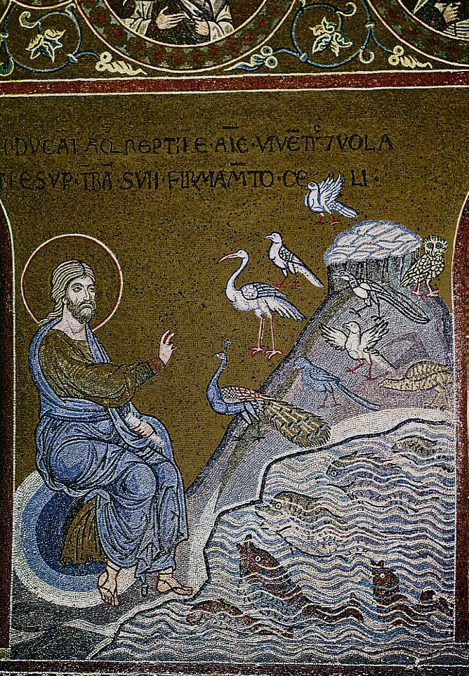 Бог создаёт солнце, луну и звезды // Сотворение птиц, пресмыкающихся и рыб
