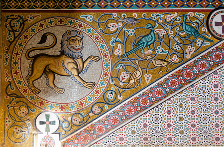 Мозаики на каллон святыми и растительными орнаментами. Палатинская капелла в Палермо, XII век.