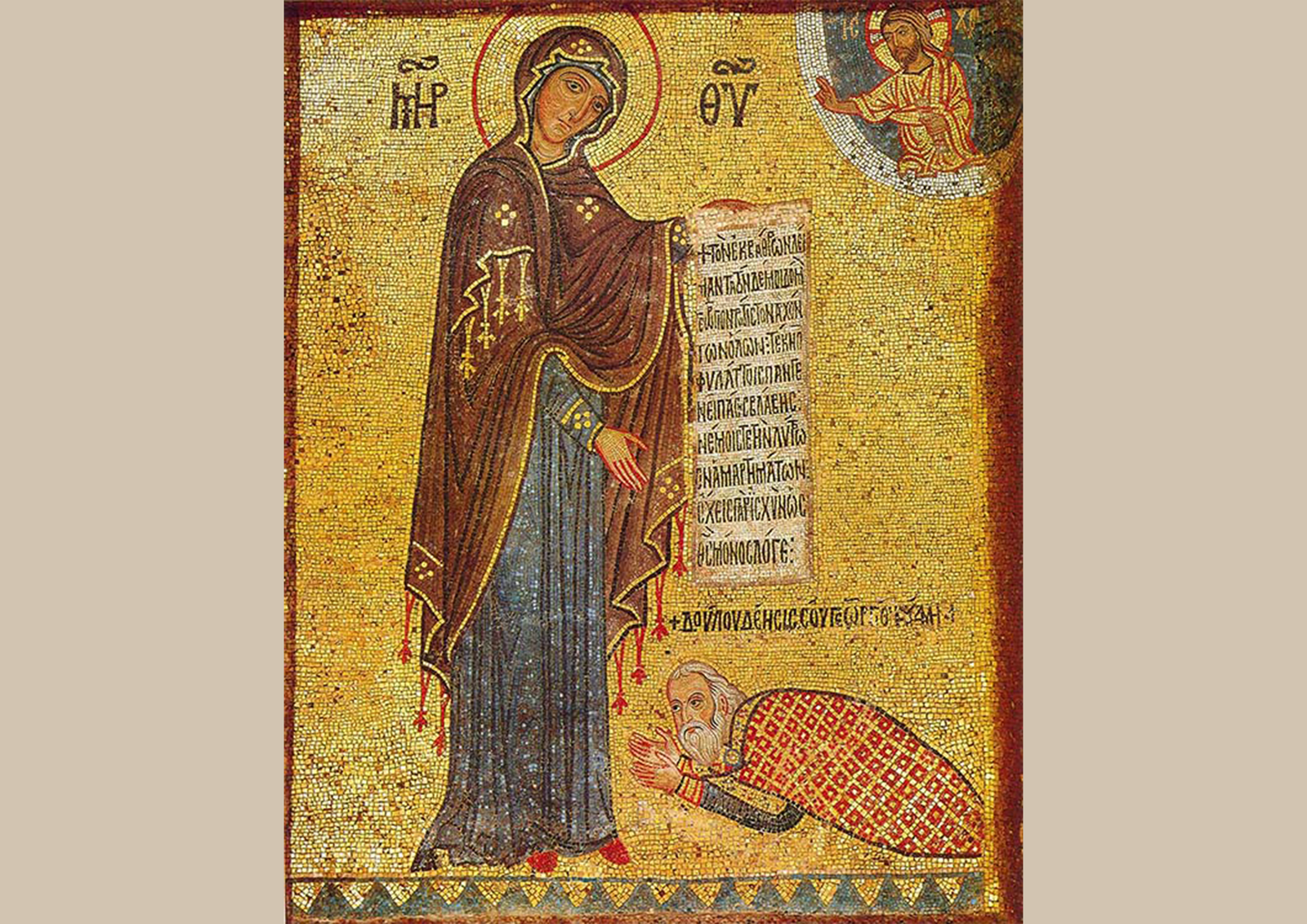 Церковь Марторана, Палермо. Богоматерь. Фрагмент мозаики Георгий Антиохийский у ног Богородицы. 1143-1151