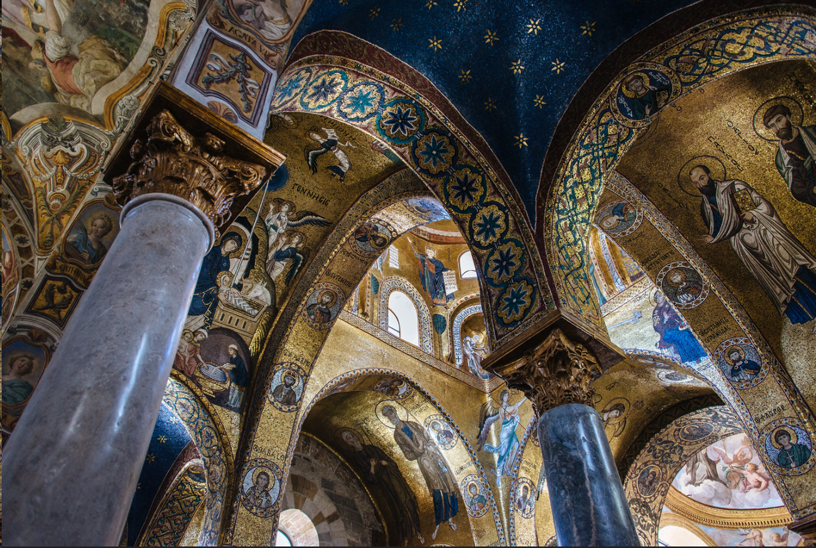 Купол, апсида с изображениями архангелов и апостолов. Собор Марторана в Палермо, XII век.