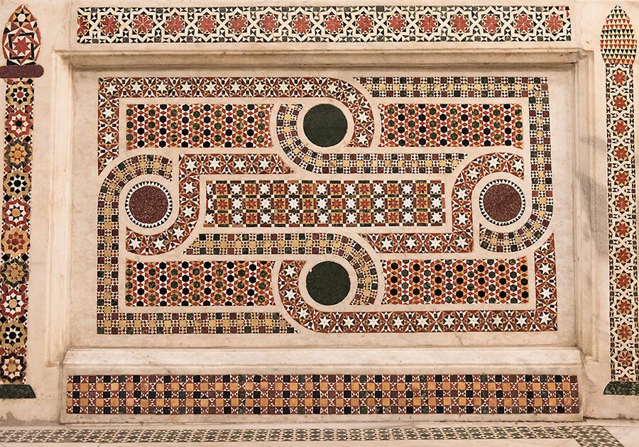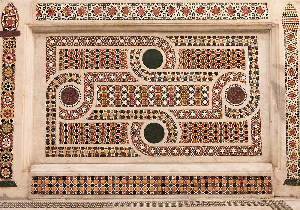 Стены и полы храмов украшены орнаментами из звёзд, многоугольных форм и пересекающихся линий. Эти абстрактные мотивы, характерны исламской культуре и построенные на принципе бесконечного повторения, выражают идею божественного превосходства над материальным миром и недоступности сущности Бога