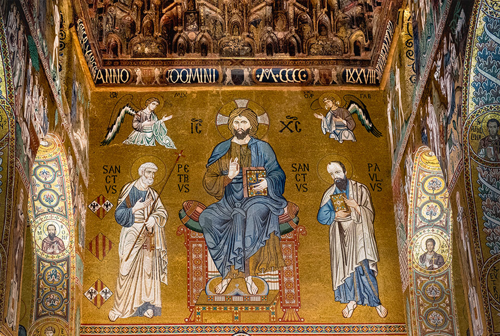 Огромная фигура Христа Пантократора, занимающая всю центральную апсиду, не просто доминирует над пространством — она подавляет его, безраздельно утверждая власть Небесного Царя. [5] Этот беспрецедентный масштаб был призван продемонстрировать всему христианскому миру неоспоримое могущество, богоизбранность и несметное богатство норманнской династии.