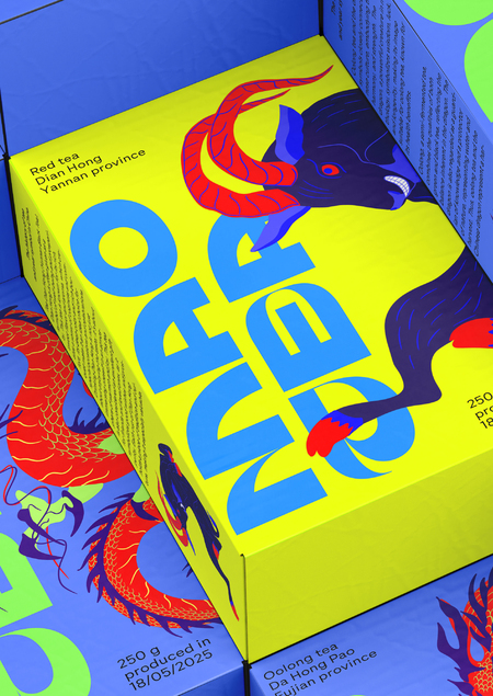 Упаковка разных сортов китайского чая. На упаковке изображены животные восточного гороскопа, соотнесенные с разными чаями в зависимости от характеристик животных и чая.
