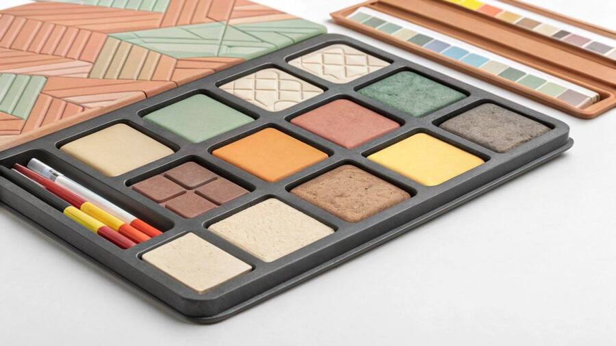 Цветовая палитра Плитрис основана на оттенках природного ландшафта Воронежской области — глины, песка, сухой травы и осеннего неба. Она передаёт ощущение земли, тепла и спокойствия, поддерживая тактильность и природность самого материала.