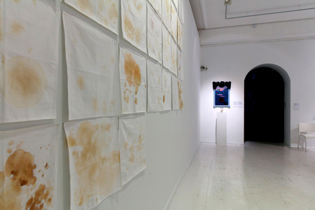 «Чайная летопись» Инсталляция. Хлопковые салфетки, чай, размеры: 3,6×2,9 м. ММОМА. фото И. Новиков-Двинский 2020