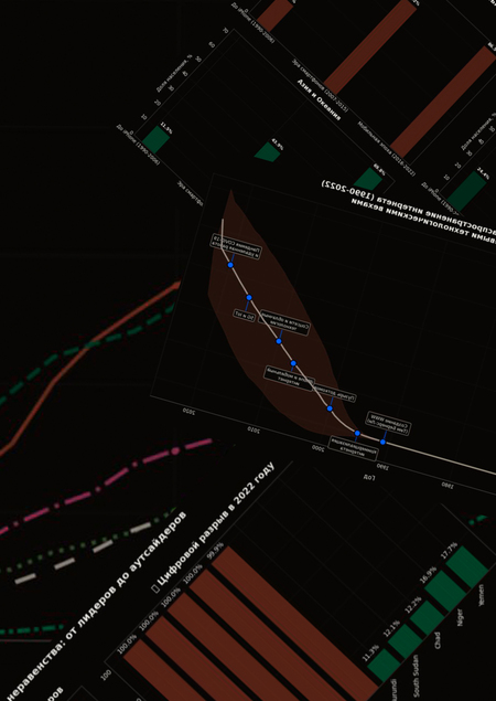 Цифровой разрыв Сравнительный анализ стран-лидеров и аутсайдеров через две связанные визуализации: исторические траектории и текущее состояние. Подчеркивает масштаб неравенства в цифровом доступе.