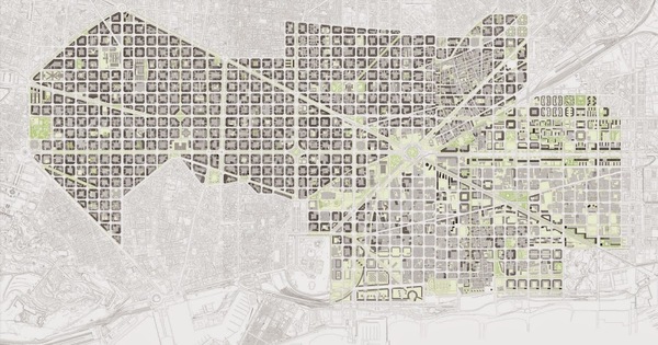 Перестройка Мадрида в конце XIX в. — один из первых примеров линейной планировки.