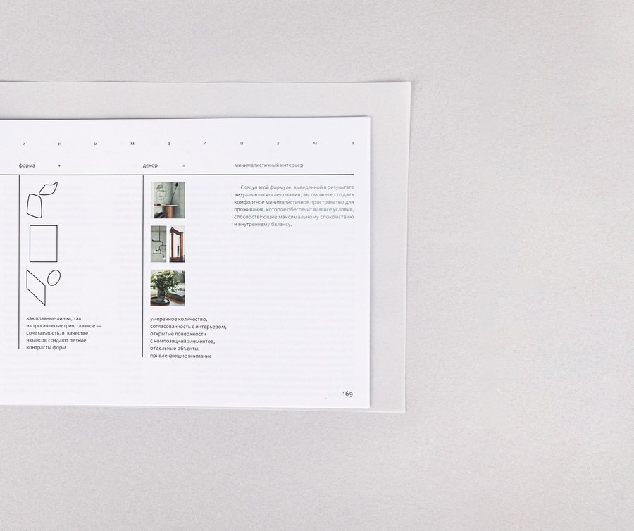 Структурирование книги на основе приемов в минималистичных дизайнах интерьеров: материал, цвет, освещение, форма, декор, свободное пространство