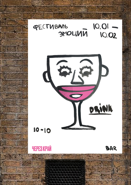 «Через край» — это необычный бар эмоций, место, где каждый посетитель испытает давно забытое или совсем неизведанное, выпив напиток. Ассортимент котейлей представляет собой разные эмоции (обычные и составные).