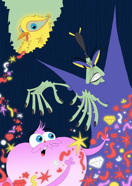 Проект представляет собой переосмысление японской народной сказки о простодушном старике, властной старухе и покалеченном воробье