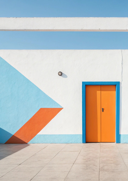 В нейросети Recraft.ai я создала изображение промт: Minimalism, abstract art, geometric abstraction, study, education. Colors: pure sky blue, pure blue, vibrant orange. Clean lines, simple design.