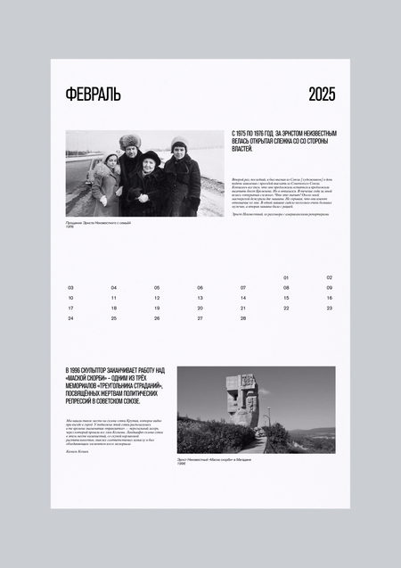 В 2025 году будет отмечаться сто лет со дня рождения советско-американского скульптора Эрнста Неизвестного. К этому событию решено было создать календарь о жизни и творчестве Неизвестного.