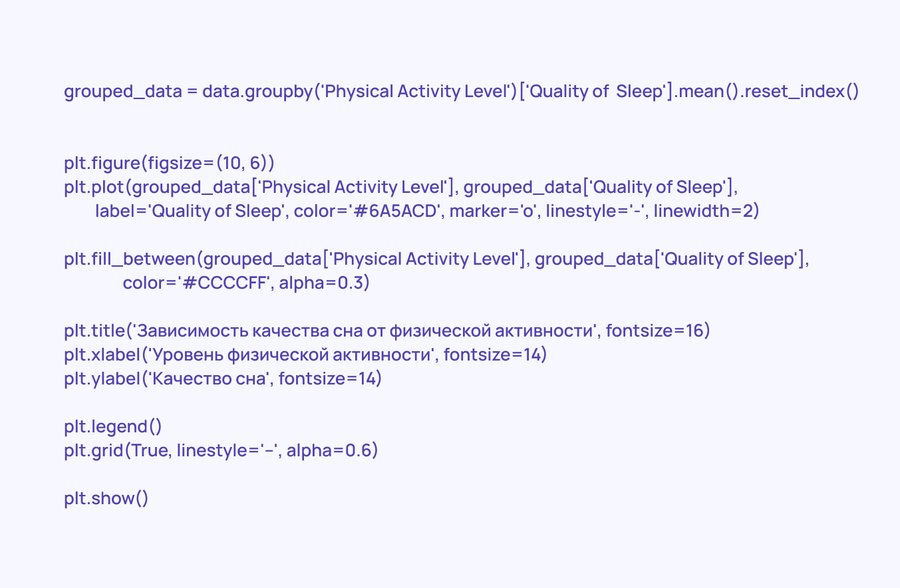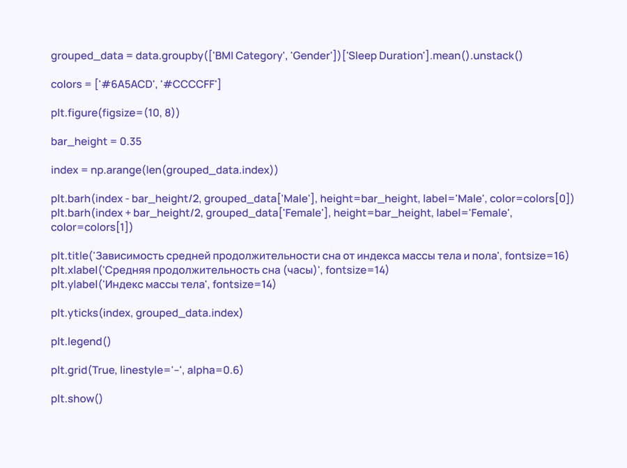 Для оформления графиков в едином стиле я использовала пастельно-фиолетовые оттенки, которые ассоциируются у меня со сном. Также я использовала Photoshop, чтобы добавить текстуру ткани с помощью наложения.