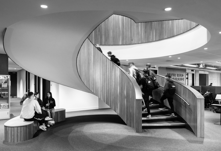 Учебные зоны, как и досуговые просторны и имеют схожую отделку, таким образом, задавая общую атмосферу как для образовательных, так и для общественных пространств.